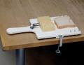 Eilaisia leikkaamisen apuvälineitä on lenkki- ja pystykahvaisia veitsiä, sekä leikkulautoja joissa leikattavan tuotteen saa kiinnitettyä leikkuulautaan mahdollistaen leikkaamisen yhdellä kädellä.